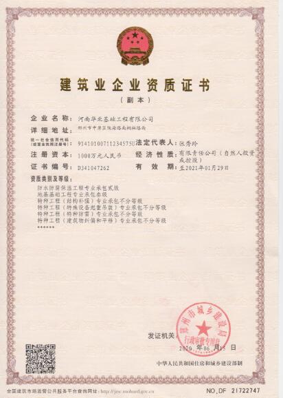 河南華北基礎(chǔ)工程有限公司成立于1998年,由華北地勘工程公司改制而來(lái)。公司下設(shè)地基基礎(chǔ)公司、定向技術(shù)服務(wù)公司、新產(chǎn)品研發(fā)中心三個(gè)單位。設(shè)立綜合管理部、生產(chǎn)運(yùn)行部、安全環(huán)保部、經(jīng)營(yíng)財(cái)務(wù)部、商務(wù)合約部五個(gè)職能部門(mén)。