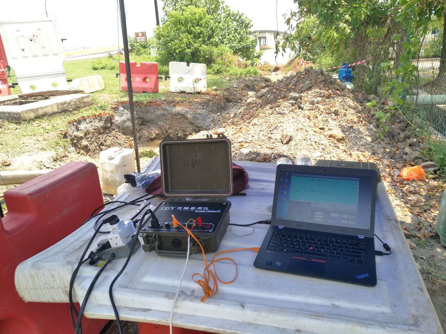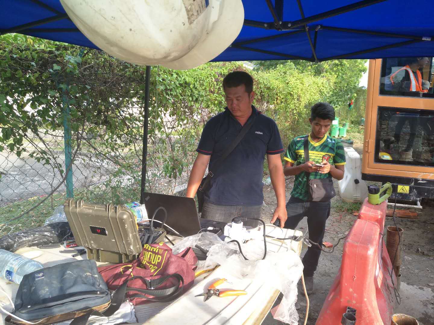 這次穿越鉆機(jī)受限制,只能固定在一個(gè)地方,旁邊是給船加油的油廠,穿越差不多平行橋走,距離橋10米距離,處鉆口也很受限制,出鉆口有停車場,有人工管網(wǎng)。